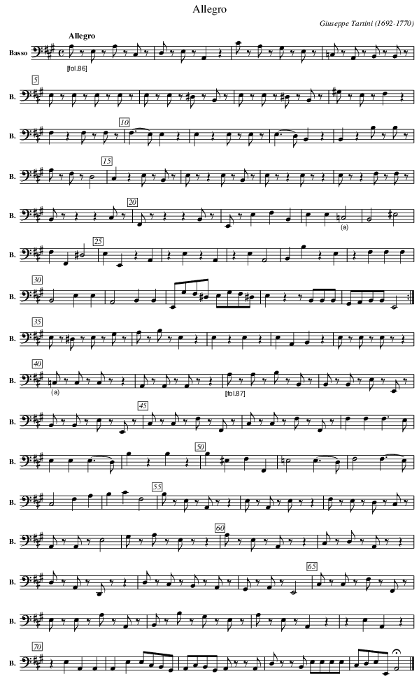 Sonata for Violin and Bass in A major (B4)