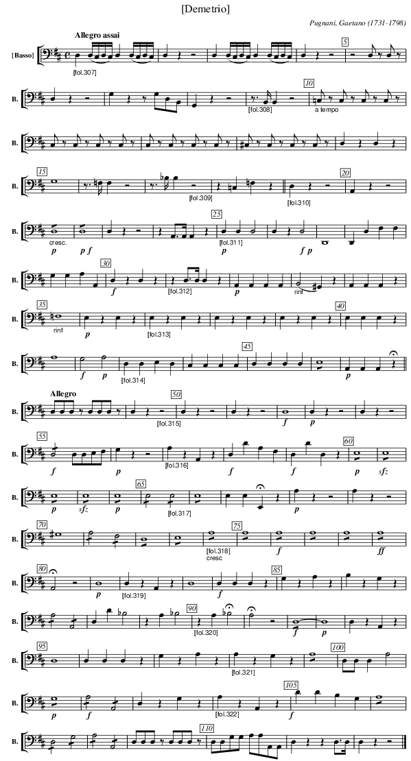 X:2914 T:[Demetrio] C:Pugnani, Gaetano (1731-1798) M:C L:1/4 K:D V: 14 clef=bass name="[Basso]" sname="B." %%MIDI program 1 42 %%staves [ 14 ] %------------------------------------- "_[fol.307]" [K:D] [Q:"Allegro assai"] D, (D,//C,//D,//C,//)D, (D,//C,//D,//C,//) | D,zz2| D, (D,//C,//D,//C,//)D, (D,//C,//D,//C,//) | D,zz2 | z2 D,/ z/ D,/z/ | D,zz2 | G,z z/G,/D,/B,,/ | G,,zz2 | \ "_[fol.308]" z/>B,,/ B,,z2 | "_a tempo" =C,/z/ C,/z/ C,/z/ C,/z/ | C,/z/ C,/z/ C,/z/ C,/z/ | C,/z/ C,/z/ C,/z/ C,/z/ | ^C,/z/ C,/z/ C,/z/ C,/z/ | [Q:Allegro] D,zD,z | G,4 | z/> =F,/ F,z2 | z/> _B,/ B, \ "_[fol.309]" z2 | z =C,=F,z || \ "_[fol.310]" [Q:Adagio] D,zz2 | A,,zz2| !p! "_cresc." !/!D,4| !p! !f! !/!D,4| D,zz2 | z A,,/>A,,/ A,,z |\ "_[fol.311]" !p!D,D,D,2| D,z!f!!p!D,2 | D,,4 | D,,D,F,F,| G,G,A,A,,| !f!D,zD,z | \ "_[fol.312]" zD,/>D,/ D,z | !p!A,,A,,A,,A,, | "_rinf" (B,,2^G,,)z | A,,A,,A,,z | "_rinf" =F,4 | !p!E,zE,z | \ "_[fol.313]" E,zE,z | E,zE,z| E,zE,z | E,E,E,z | A,4 | !f!G,2!p!A,2| \ "_[fol.314]" D,D,E,D, | C,C,C,C, | D,D,D,D, | !/! E,4 | !p! A,,A,,A,, !fermata!z || [Q:"Allegro"] D,/D,/D,/z/ D,/D,/D,/z/ | D,z \ "_[fol.315]" z2 | D,zz2 | D,zz2| !f!D,4 | !p!D,zz2 | D,zz2 | !f! !/!D,2 D,/D,/E,/F,/ | !p! G,zz2 | \ "_[fol.316]" A,zA,,z | !f! D,DA,F, | !f! D,DD,z | !p!!/!E,4 | !sfz! !/!E,4 | !p! !/!E,4 | !sfz!!/!E,4 | !p! !/!E,4 | !/!E,2 \ "_[fol.317]" !/!E,2 | !/!E,4 | E,E,!fermata!E,,z | !p!A,zz2 | A,zz2 | ^G,4 | !/!A,2 !/!F,2 | !/!D,4 | !/!E,4 | \ "_[fol.318]" "_cresc" !/!A,4 | !/!A,4 | !f! !/!A,4 | !/!A,4 | !/!A,4 | !ff! !/!A,4 | !fermata! A,,2 z2 | !p! D,4 | \ "_[fol.319]" D,zA,,z | D,4 | !f! D,D,D,z | G,z A,z | B,zG,z | !/!A,2 !/!A,,2 | D,D_B,2 | zA,_B,2 | \ "_[fol.320]" zA,!fermata!_B,2 | !fermata! A,2z2 | !f! !/! D,4- | !p! D,4 | D,zA,,z | D,4 | D,D,D,z | G,zA,z | \ "_[fol.321]" A,zG,z | !/!A,4 | D,/D,/ D, A,2 | !p! !/! G,4 | !f! !/! A,2 !/!A,,2 | D,zG,z | \ "_[fol.322]" A,zA,,z !f! | DDB,G, | !/! A,4 | !/! D,2 !/! G,2 | !/! A,2 !/!A,,2 | D,/D,/D,/z/ D,/D,/D,/z/ | D,/D,/G,/G,/ A,/A,/A,,/A,,/ | D, zz D,/>D,/ |D,zz2 |] %-------------------------------------