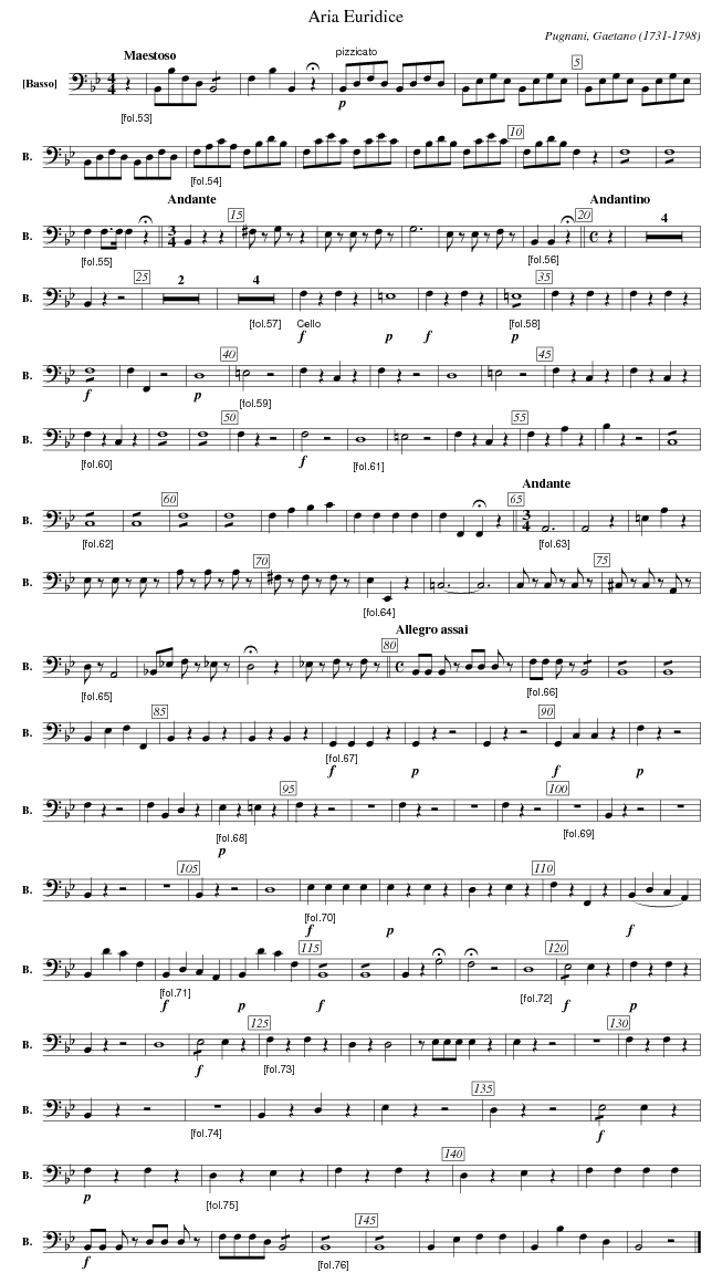 X:614 T:Aria Euridice C:Pugnani, Gaetano (1731-1798) M:4/4 L:1/4 K:Bb V: 14 clef=bass name="[Basso]" sname="B." %%MIDI program 1 42 %%staves [ 14 ] [V: 14] %------------------------------------------------------------------- "_[fol.53]" [Q:"Maestoso"] z | B,,/B,/F,/D,/ !/! B,,2 | F,B,B,,!fermata!z | \ [L:1/8] "^pizzicato" !p!B,,D,F,D, B,,D,F,D, | B,,E,G,E, B,,E,G,E,| B,,E,G,E, B,,E,G,E, |B,,D,F,D, B,,D,F,D, | \ "_[fol.54]" F,A,CA, F,B,DB, | F,CEC F,CEC | F,B,DB, F,CEC | F,B,DB, \ [L:1/4] F, z | !/!F,4 |!/!F,4 | \ "_[fol.55]" F,F,/>F,/F, !fermata!z || [Q:"Andante"][M:3/4] B,,zz | ^F,/z/ G,/z/ z | E,/z/ E,/z/ F,/z/ | G,3 | E,/z/ E,/z/ F,/z/ | \ "_[fol.56]" B,,B,,!fermata!z || [Q:"Andantino"][M:C] z | Z4 | B,,zz2| Z2 | \ "_[fol.57]" Z4 | "_Cello" !f! F,zF,z | !p!=E,4 | !f!F,zF,z | \ "_[fol.58]" !p!!/!=E,4 | F,zF,z |F,zF,z | !f!!/!F,4 | F,F,,z2 | !p!D,4 | \ "_[fol.59]" =E,2z2 | F,zC,z | F,zz2 | D,4 | =E,2z2 | F,zC,z | F,zC,z | \ "_[fol.60]" F,zC,z | !/!F,4 | !/!F,4 | F,zz2 | !f!F,2z2| \ "_[fol.61]" D,4 | =E,2z2 | F,zC,z| F,zA,z| B,zz2| !/!C,4| \ "_[fol.62]" !/!C,4|!/!C,4| !/!F,4| !/!F,4| F,A,B,C | F,F,F,F, | F,F,,!fermata!F,,z || \ "_[fol.63]" [Q:"Andante"][M:3/4] A,,3 | A,,2z| =E,A,z| E,/z/ E,/z/ E,/z/ | A,/z/ A,/z/ A,/z/ | ^F,/z/ F,/z/ F,/z/ | \ "_[fol.64]" E,E,,z|=C,3-|C,3|C,/z/ C,/z/ C,/z/|^C,/z/ C,/z/ A,,/z/| \ "_[fol.65]" D,/z/A,,2 | _B,,/_E,/ F,/z/ _E,/z/ | !fermata!D,2z | _E,/z/ F,/z/ F,/z/ || \ % [Q:"Allegro assai"][M:C] B,,/B,,/ B,,/z/ D,/D,/ D,/z/ | \ % "_[fol.66]" F,/F,/ F,/z/ !/!B,,2 |!/!B,,4 |!/!B,,4 | B,,E,F,F,,| B,,z B,,z | B,,z B,,z | \ "_[fol.67]" !f!G,,G,,G,,z | !p!G,,zz2|G,,zz2|!f!G,,C,C,z| !p!F,zz2|F,zz2|F,B,,D,z |\ "_[fol.68]" !p!E,z=E,z| F,zz2| z4|F,zz2| z4| F,zz2| \ "_[fol.69]" z4| B,,zz2| z4|B,,zz2| z4|B,,zz2| D,4| \ "_[fol.70]" !f!E,E,E,E, | !p!E,zE,z |D,zE,z |F,zF,,z | !f! (B,,D,C,A,,) | B,,DCF, | \ "_[fol.71]" !f!B,,D,C,A,, | !p!B,,DCF,| !f!!/!B,,4| !/!B,,4| B,,z !fermata!G,2|!fermata!F,2z2| \ "_[fol.72]" D,4| !f!!/!E,2E,z| !p!F,z F,z | B,,zz2 | D,4 | !f!!/!E,2E,z| \ "_[fol.73]" F,z F,z | D,z D,2 | z/E,/E,/E,/ E, z | E,zz2 | z4 | F,z F,z | B,,zz2 | \ "_[fol.74]" z4| B,,z D,z | E,zz2 | D,zz2 | !f!!/!E,2E,z| !p!F,z F,z | \ "_[fol.75]" D,z E,z | F,z F,z | D,z E,z |F,F,F,F, | !f!B,,/B,,/ B,,/z/ D,/D,/ D,/z/ | F,/F,/F,/D,/ !/!B,,2 | \ "_[fol.76]" !/!B,,4 |!/!B,,4 | B,,E,F,F, | B,,B,F,D, | B,,2z2 |] \ %-------------------------------------------------------------------