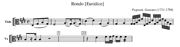 X:3813 T:Rondo [Euridice] C:Pugnani, Gaetano (1731-1798) M:C L:1/4 K:E V: 13 clef=alto name="Viole" sname="Ve" %%MIDI program 1 41 %%staves [ 13 ] %------------- (E,/G,/B,/G,/) | F,2 (A,/>G,/)(A,/>G,/) | (DE) (G,A,) | G,A, G,/8G,/8B,/8E/8 G/8E,/8G,/8B,/8 E/8G,/8B,/8E/8 G/8E/8B,/8G,/8| B,/2z/4B,/4 B,z2 | \ X15 | zEF//F/8G/8 F//F// !//!F | %-------------