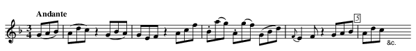 [Q:"Andante"] (GAB)| (Adc)z2 (GBA) | GEF z2 Acf | .B(ag) .A(gf) (GBd) | {F}E2F z2 GAB | Adc "_&c." X