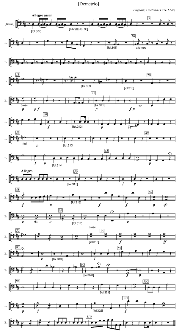 X:2914 T:[Demetrio] C:Pugnani, Gaetano (1731-1798) M:C L:1/4 K:D V: 14 clef=bass name="[Basso]" sname="B." %%MIDI program 1 42 %%staves [ 14 ] %------------------------------------- "_[fol.307]" [K:D] [Q:"Allegro assai"] D, (D,//C,//D,//C,//)D, (D,//C,//D,//C,//) | "_[Libretto fol.33]" D,zz2| D, (D,//C,//D,//C,//)D, (D,//C,//D,//C,//) | D,zz2 | z2 D,/ z/ D,/z/ | D,zz2 | G,z z/G,/D,/B,,/ | G,,zz2 | \ "_[fol.308]" z/>B,,/ B,,z2 | "_a tempo" =C,/z/ C,/z/ C,/z/ C,/z/ | C,/z/ C,/z/ C,/z/ C,/z/ | C,/z/ C,/z/ C,/z/ C,/z/ | ^C,/z/ C,/z/ C,/z/ C,/z/ | [Q:Allegro] D,zD,z | G,4 | z/> =F,/ F,z2 | z/> _B,/ B, \ "_[fol.309]" z2 | z =C,=F,z || \ "_[fol.310]" [Q:Adagio] D,zz2 | A,,zz2| !p! "_cresc." !/!D,4| !p! !f! !/!D,4| D,zz2 | z A,,/>A,,/ A,,z |\ "_[fol.311]" !p!D,D,D,2| D,z!f!!p!D,2 | D,,4 | D,,D,F,F,| G,G,A,A,,| !f!D,zD,z | \ "_[fol.312]" zD,/>D,/ D,z | !p!A,,A,,A,,A,, | "_rinf" (B,,2^G,,)z | A,,A,,A,,z | "_rinf" =F,4 | !p!E,zE,z | \ "_[fol.313]" E,zE,z | E,zE,z| E,zE,z | E,E,E,z | A,4 | !f!G,2!p!A,2| \ "_[fol.314]" D,D,E,D, | C,C,C,C, | D,D,D,D, | !/! E,4 | !p! A,,A,,A,, !fermata!z || [Q:"Allegro"] D,/D,/D,/z/ D,/D,/D,/z/ | D,z \ "_[fol.315]" z2 | D,zz2 | D,zz2| !f!D,4 | !p!D,zz2 | D,zz2 | !f! !/!D,2 D,/D,/E,/F,/ | !p! G,zz2 | \ "_[fol.316]" A,zA,,z | !f! D,DA,F, | !f! D,DD,z | !p!!/!E,4 | !sfz! !/!E,4 | !p! !/!E,4 | !sfz!!/!E,4 | !p! !/!E,4 | !/!E,2 \ "_[fol.317]" !/!E,2 | !/!E,4 | E,E,!fermata!E,,z | !p!A,zz2 | A,zz2 | ^G,4 | !/!A,2 !/!F,2 | !/!D,4 | !/!E,4 | \ "_[fol.318]" "^cresc" !/!A,4 | !/!A,4 | !f! !/!A,4 | !/!A,4 | !/!A,4 | !ff! !/!A,4 | !fermata! A,,2 z2 | !p! D,4 | \ "_[fol.319]" D,zA,,z | D,4 | !f! D,D,D,z | G,z A,z | B,zG,z | !/!A,2 !/!A,,2 | D,D_B,2 | zA,_B,2 | \ "_[fol.320]" zA,!fermata!_B,2 | !fermata! A,2z2 | !f! !/! D,4- | !p! D,4 | D,zA,,z | D,4 | D,D,D,z | G,zA,z | \ "_[fol.321]" A,zG,z | !/!A,4 | D,/D,/ D, A,2 | !p! !/! G,4 | !f! !/! A,2 !/!A,,2 | D,zG,z | \ "_[fol.322]" A,zA,,z !f! | DDB,G, | !/! A,4 | !/! D,2 !/! G,2 | !/! A,2 !/!A,,2 | D,/D,/D,/z/ D,/D,/D,/z/ | D,/D,/G,/G,/ A,/A,/A,,/A,,/ | D, zz D,/>D,/ |D,zz2 |] %-------------------------------------