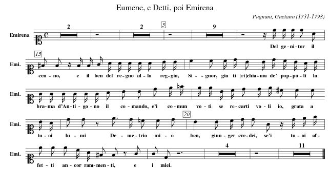w: e il ben del re-gno al-la reg-gia, Si-gnor, gia ti [ri]chia-ma de' pop-po-li la bra-ma d'An-ti-go-no il co-mando, e'i co-mun vo-ti se re-carti vo-li io, grata a tu-oi lu-mi