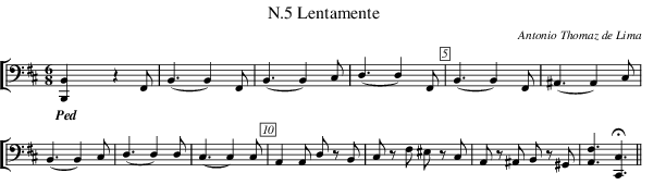 [M:6/8] [K:D] !ped![B,,,B,,] x/z F,,/ | (B,,3/2 B,,) F,,/ | (B,,3/2 B,,) C,/ |