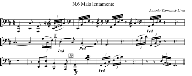 [K:bass] !ped! F,,//A,,//D,//F,// z2 z3 | (C,3C,2) ((3A,/C,/F,/) | !ped!(D,2C,) !ped!(B,,2A,,) | \