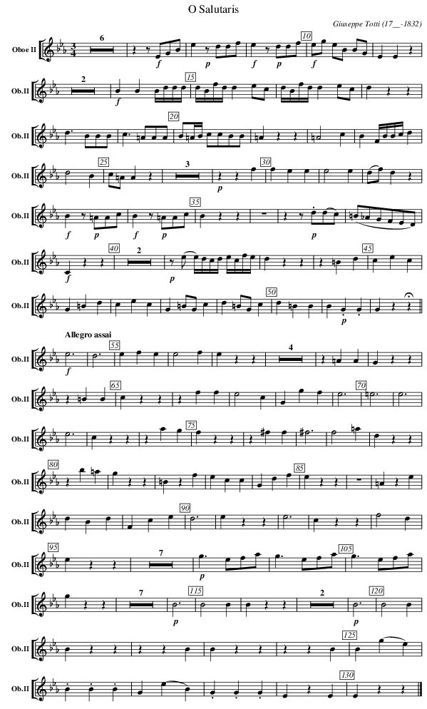 B !p! .G .G | G z !fermata! z || [Q: "Allegro assai"] !f! e3 | d3 | e f e | e2 f |\